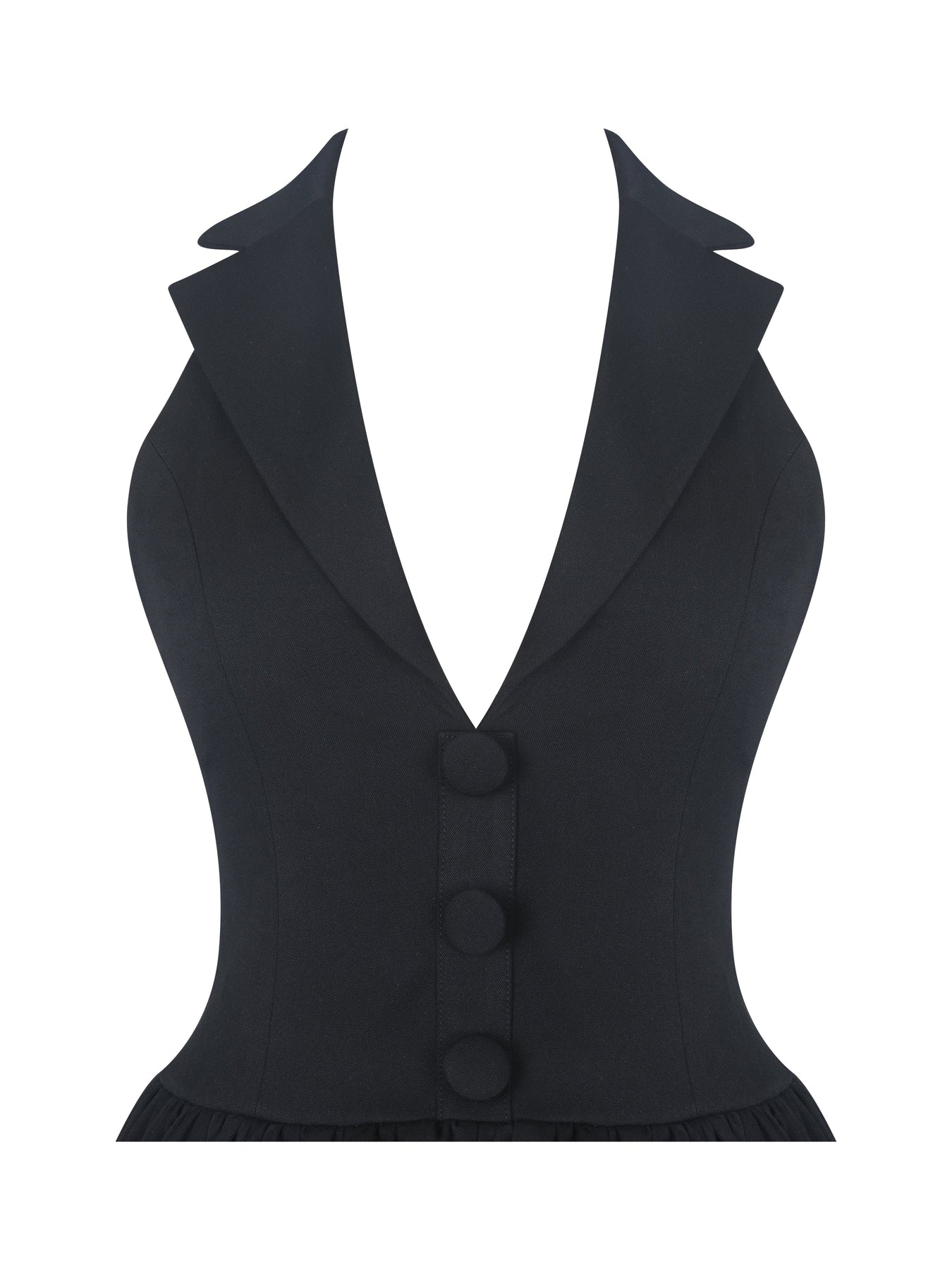 Delaney Black Lapel Halter Midi A-Line Dress