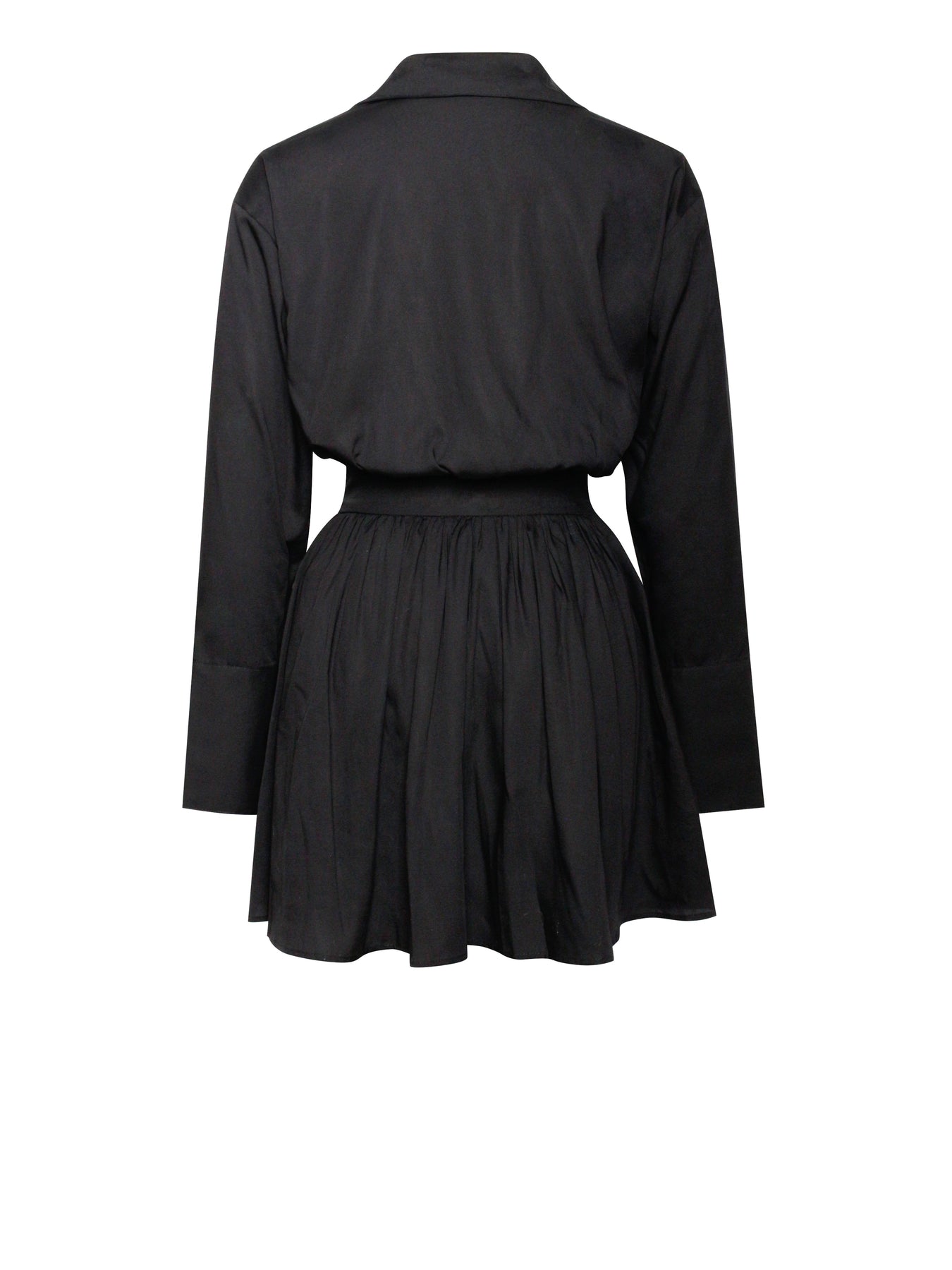 Introducing the Jamila dress, a stylish eco-luxe long-sleeve mini shirt dress designed for both comfort and elegance. The loose-fitting top features a sophisticated long cuff with three buttons, adding a refined touch. The corset waist, adorned with delicate lace decoration, creates a flattering silhouette and adds a hint of romance. An invisible side zipper ensures a seamless fit, enhancing the dress's sleek look. Perfect for any occasion, this dress combines casual charm with chic details, making it a versatile addition to your wardrobe. And it is also available in White.