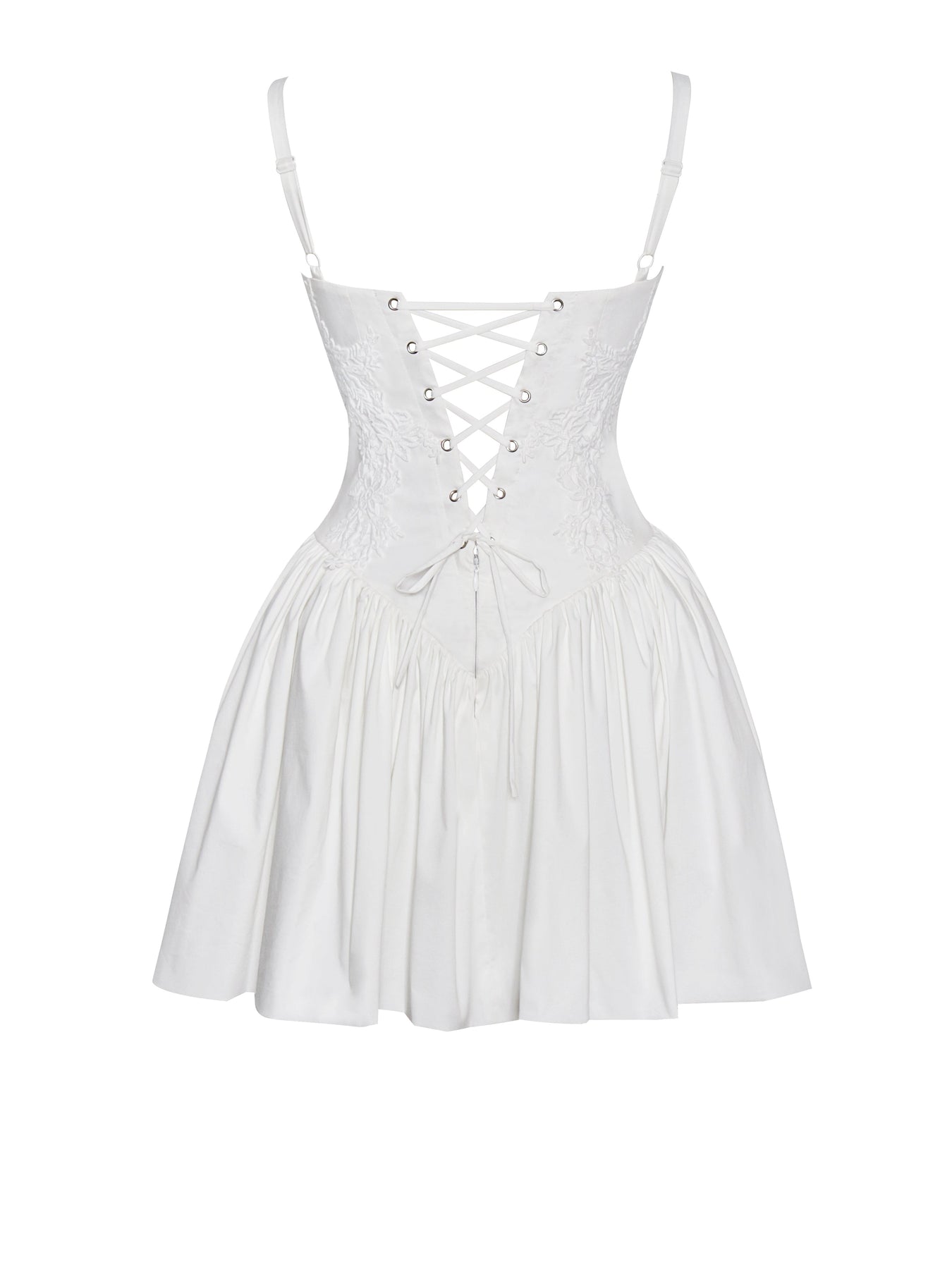 Kadi White Cotton Drop Waist Corset Mini Dress