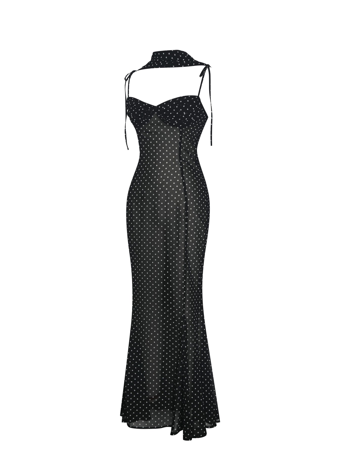Yadira Black Base Polka Dot Chiffon Maxi Dress