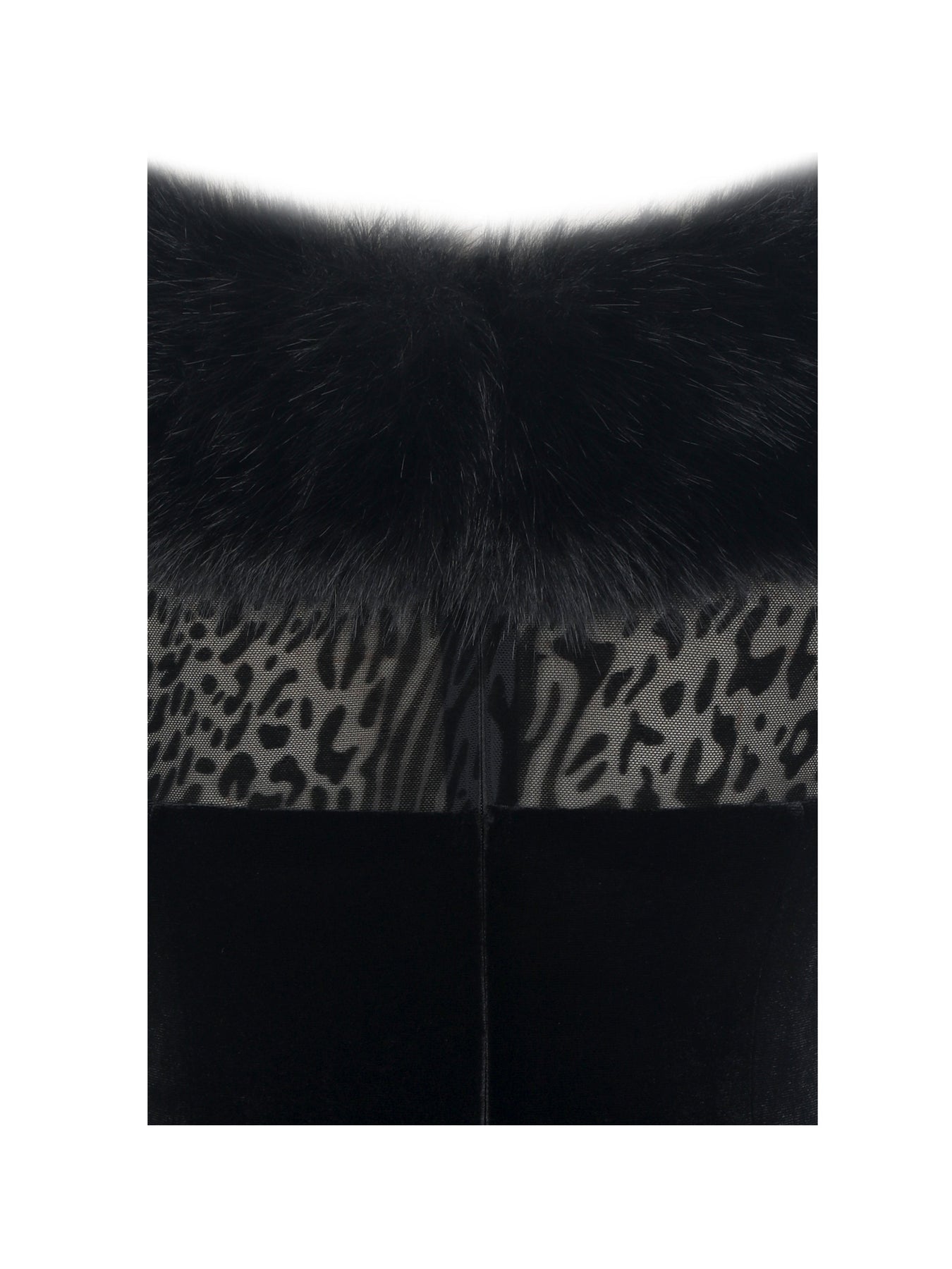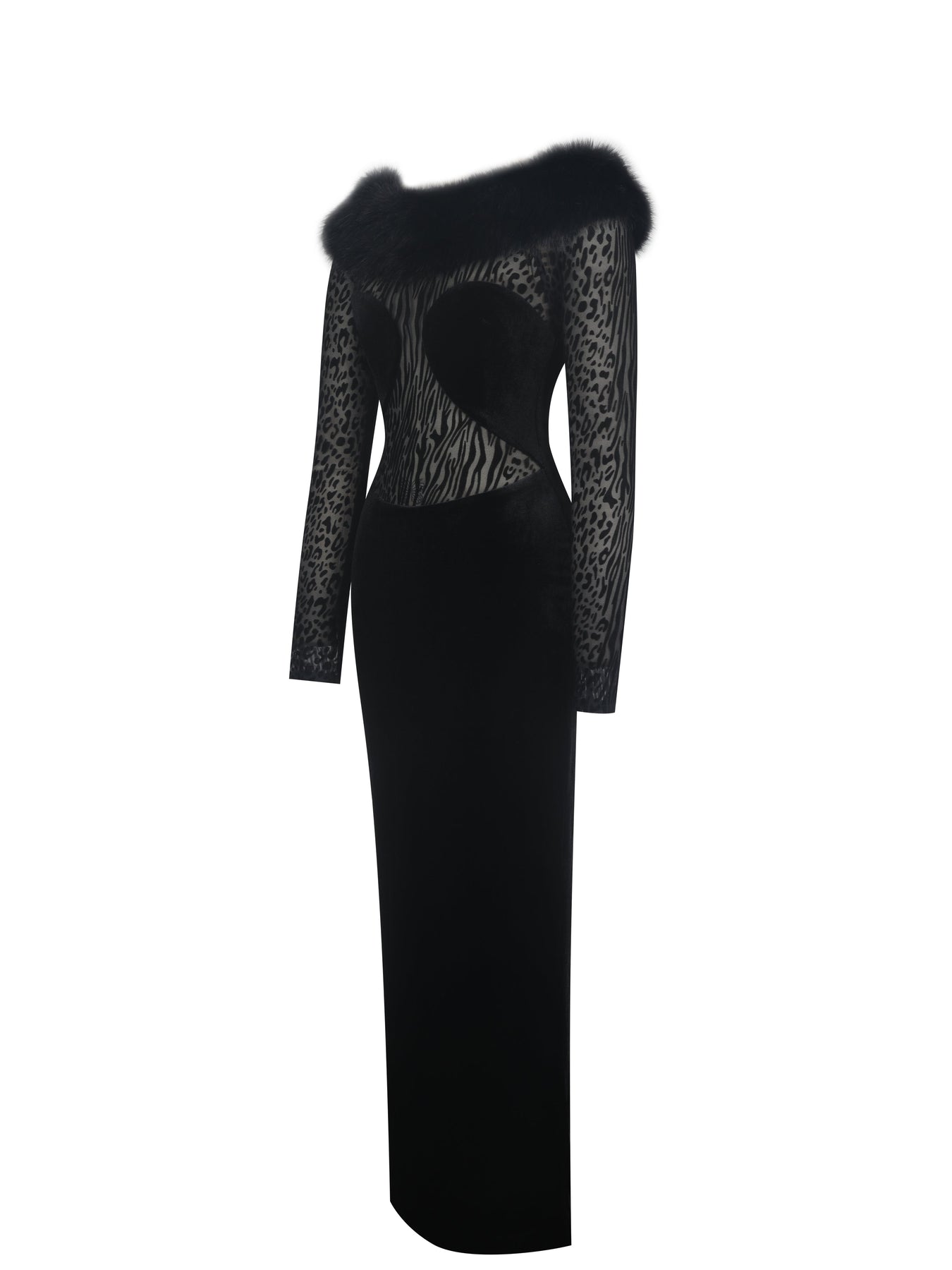 Command the room this holiday season in the Alexis Dress, a daring mix of texture and allure. The boatneck is trimmed in plush faux fur for a touch of wintry luxury, while the burnout velvet mesh bodice and sleeves — patterned in a mix of animal prints — create a sheer, sultry effect. Velvet panels curve across the bust in a sculpted semi-sphere shape, leaving just enough mesh exposed for a bold statement. The bodycon silhouette continues into a sleek black velvet maxi skirt with a back vent for effortless movement. Finished with an invisible back zipper, this dress is perfect for glamorous holiday parties, upscale evening events, or any night you want to look fierce, festive, and unforgettable.