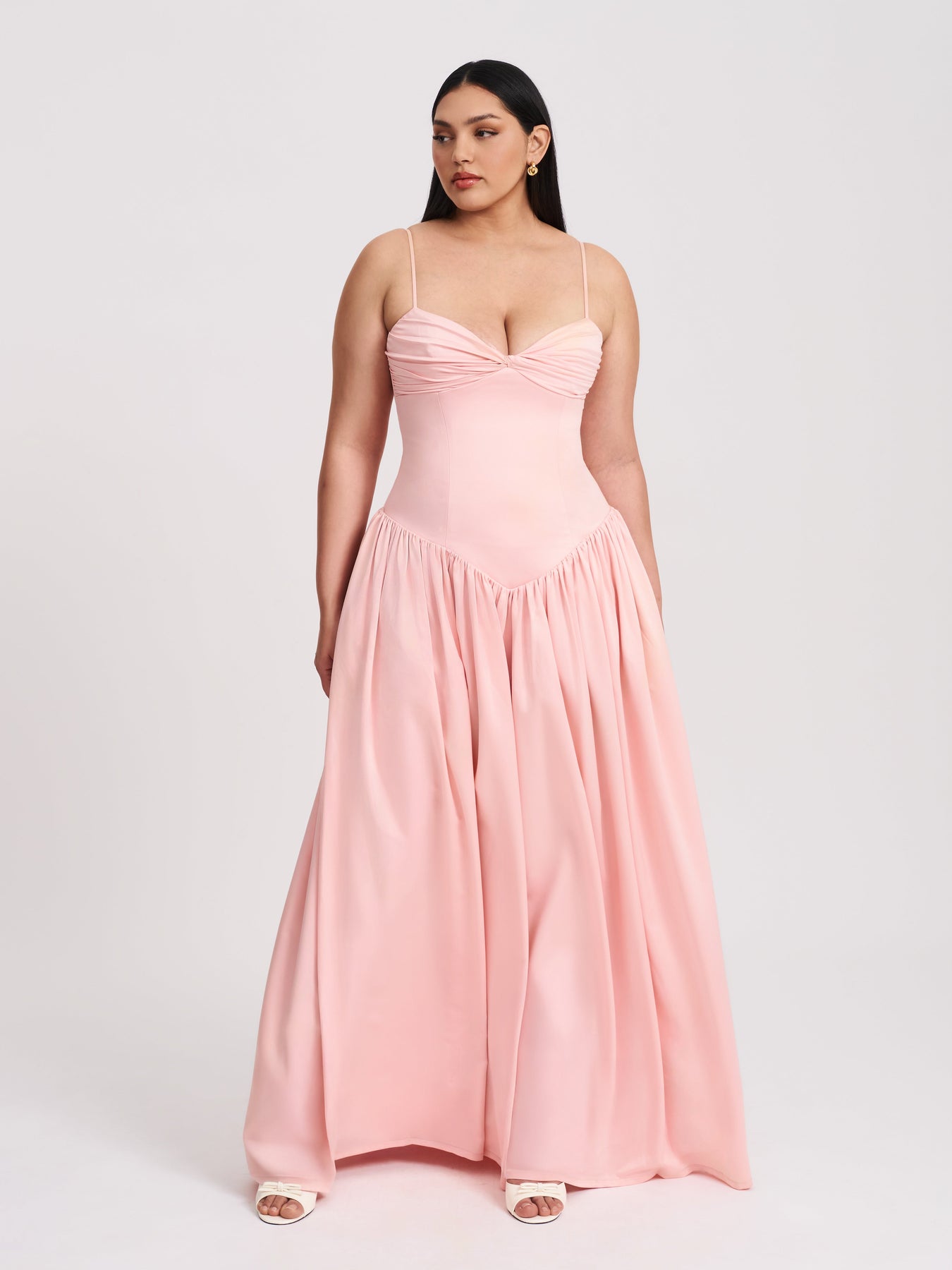 Embrace timeless elegance with the Najwa Dress, a dreamy choice for weddings, engagements, formal events, and summer celebrations. Designed in a soft baby pink hue, this full-length gown features a beautifully ruched breast, adding a touch of romance to its delicate silhouette. The drop waist enhances its flattering shape, while adjustable straps ensure a perfect fit. Thoughtfully crafted with built-in bones for structure and fully lined for comfort, the dress is finished with an invisible zipper for a seamless look. Whether for a birthday party, a summer soirée, or a special occasion, the Najwa Dress is an effortlessly graceful choice.