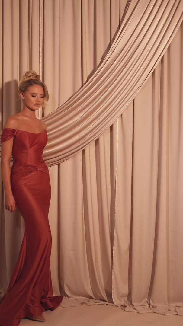 Regular price $289.00The Piper Gown is crafted from stretch jersey and features an off-shoulder neckline with softly ruched detailing across the waist for a flattering fit. The sleek, fitted silhouette extends into a smooth floor-length skirt with a subtle train. A refined and feminine choice for bridesmaids or formal events.