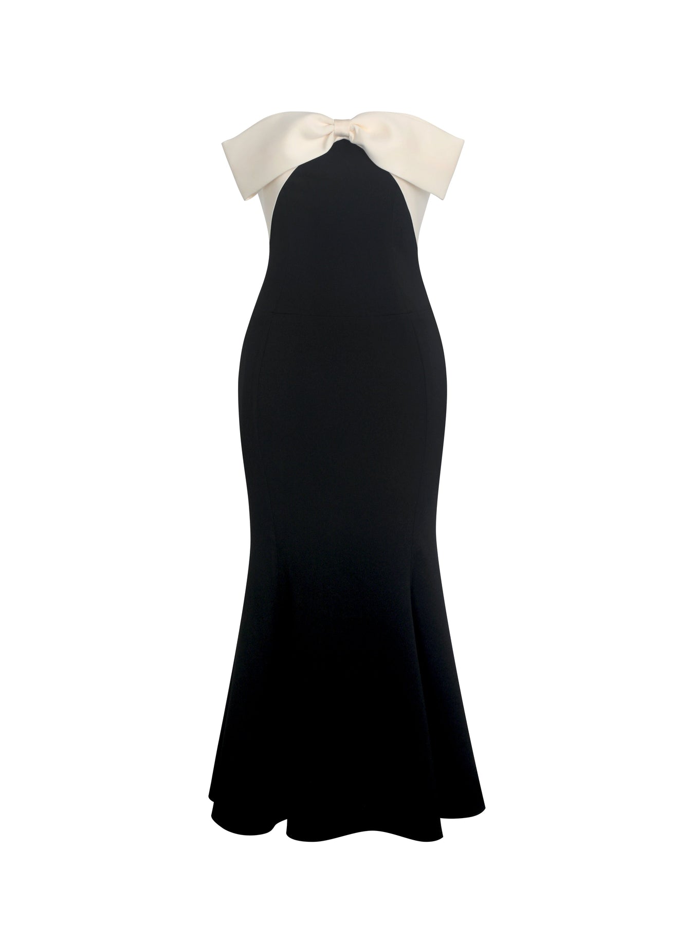 The Saige Dress is made for nights that call for timeless elegance. Crafted in a striking black-and-ivory palette, this strapless midi features a built-in corset and princess seams to sculpt the body, while the fishtail hem creates a dramatic, floor-sweeping silhouette. An ivory satin bow across the bust adds a refined touch, while the invisible back zipper and full satin lining keep the fit smooth and luxurious. Perfect for holiday galas, winter weddings, and formal evenings where sophistication is the dress code.