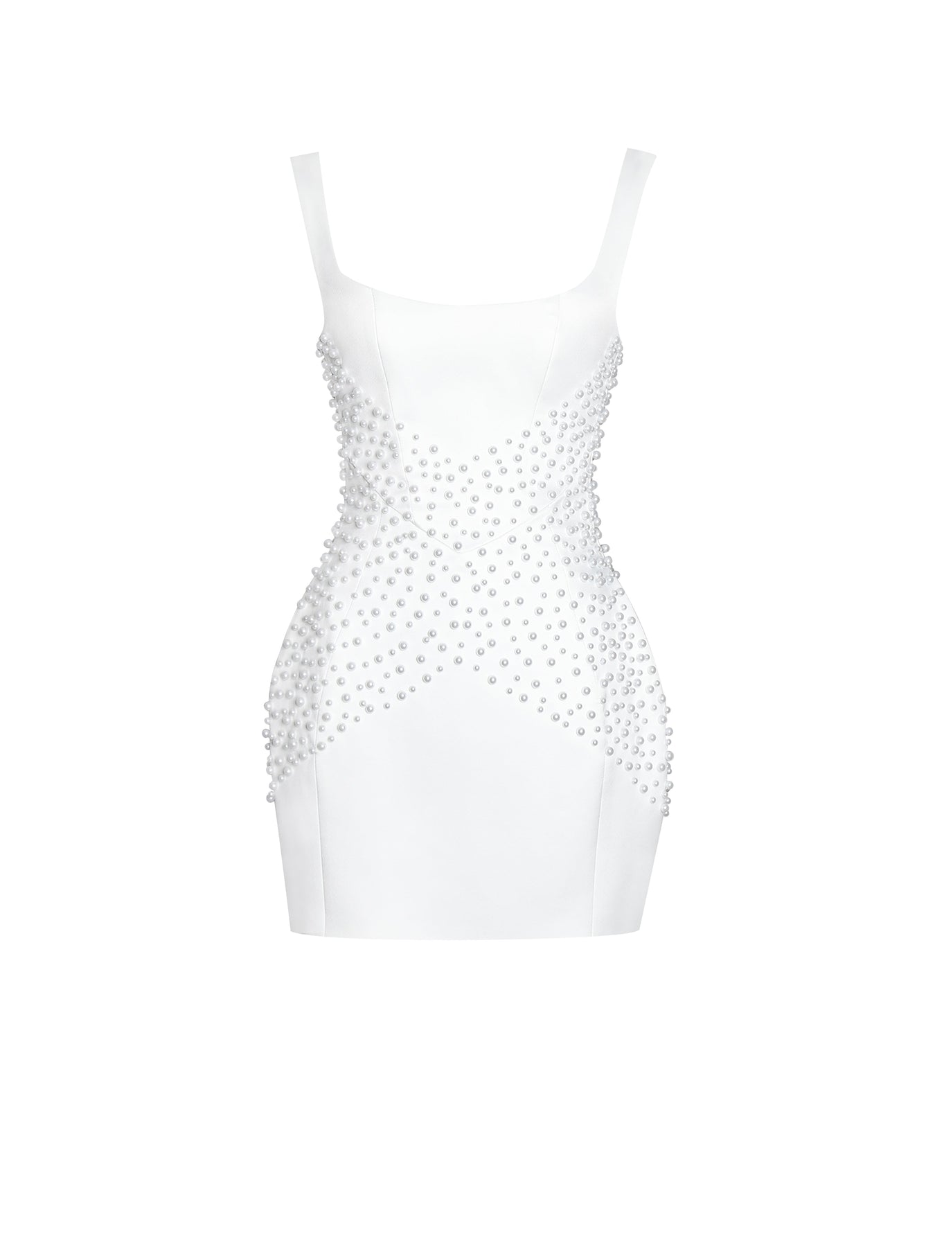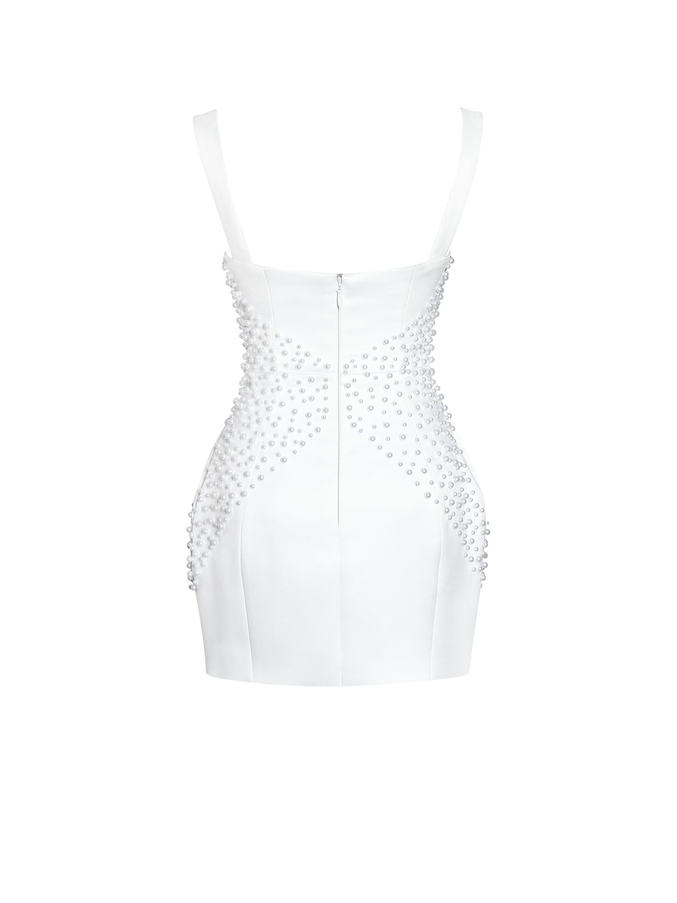 Embrace sophistication with the Tais Dress, a timeless masterpiece perfect for weddings, engagements, formal events, or any summer party. This stunning sleeveless dress features a chic square collar and a flattering V-shaped waistline that accentuates your silhouette. The elegant cocoon-shaped skirt adds a modern touch, while delicate pearl decorations and intricate beaded details offer a hint of luxury. Designed with decorative seams for added structure, the dress is fully lined for comfort, with an invisible zipper and discreet invisible pockets for a flawless finish. Whether you're dancing the night away or celebrating a special birthday, the Tais Dress ensures you’ll shine with effortless grace.