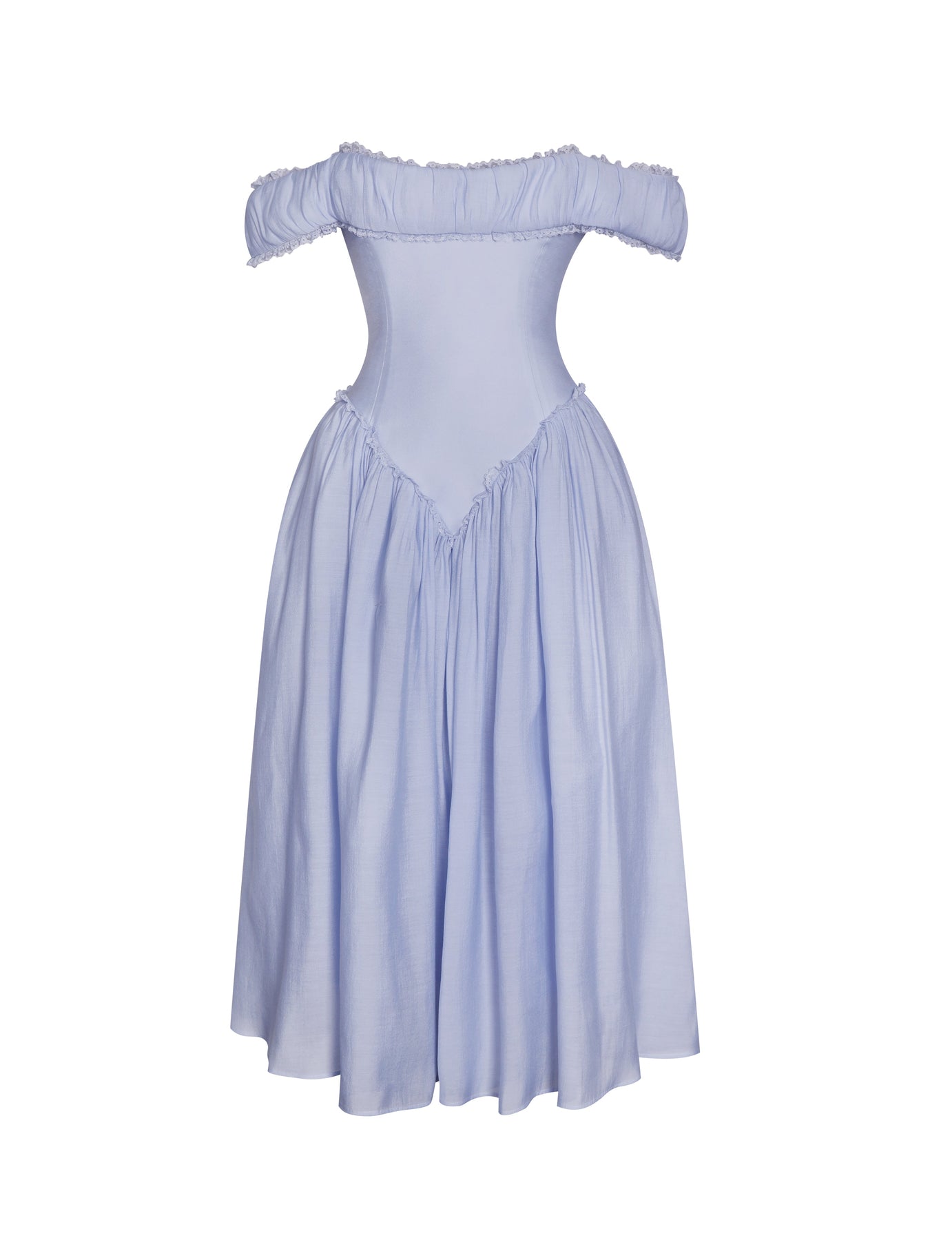 Xavy Baby Blue Off Shoulder Corset Midi Dress
