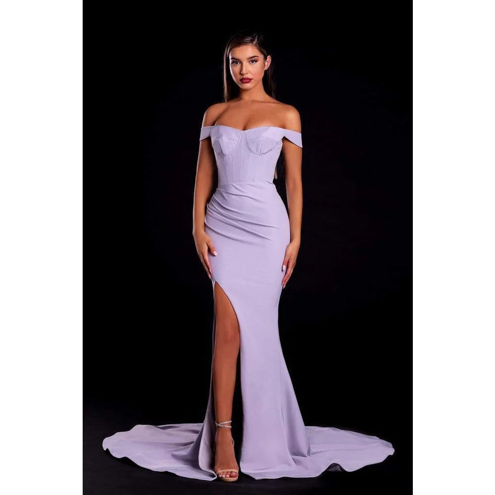Evening off the shoulders dress Make a style statement with this stunning off the shoulder dress. The flowing fabric and elegant design will have you feeling confident and beautiful all night long!